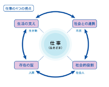 仕事には4つの視点があります。生計を得る、個人の生き甲斐、社会の中で役割をはたす、そして、人々と手を取り合うことです。仕事は、生きることそのものです。そのような意識で生きることのできる人が市民です。